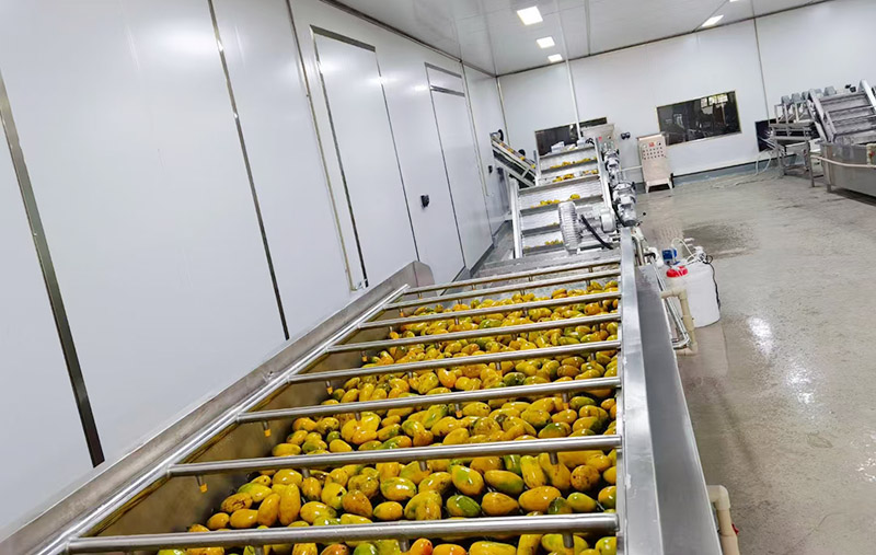 接收芒果:新鲜芒果运送到工厂后,进行初步检查,确保无腐烂、无病虫害。