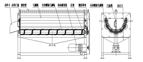 该毛刷去皮清洗机主要由机架、传动减速机、链轮罩壳、喷淋管、毛刷辊、出水斗、出料门盖、出料斗、门盖插销等部件组成。