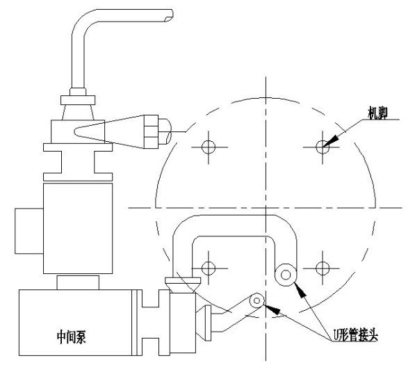当需要提高处理能力时,可卸去”U”形管(17)改装一只离心泵,接法见图3.