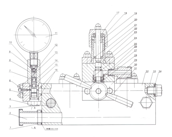 注意将手轮上的盖形螺帽在开面前顺时针先松开,让高压弹簧呈自然状态;3.对于<5>改用电流表监视,拆下压力表,用M20×1.5螺栓将压盖螺孔封闭,压力表作为定期(通常为一个月)校对之用;4.对于<7>和<8>可以拆卸压力表加注有机硅油或改换压力表组件.