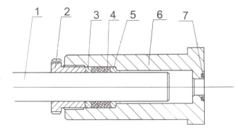 拆卸泵体大螺母(图1-26)后,卸下泵体(图1-9),即可将密封组件的柱塞密封套(图5-6)从机体中取出,再分别抽出柱塞(图5-1)和旋出紧定螺钉(图5-2),然后将压环V型(或方型)密封组件推出(图5-3-4)更换时逆向顺序装配即可.务必注意装配时,压环(图5-3)须超过密封内套的刃割槽低一些才能保证密封组件zui高的使用寿命.