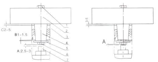 4.3.1     按逆时针方向稍微松开高压手轮(图1-12)和低压手轮(图1-13),同时顺时针松开两手轮上盖形螺帽(图2-19-25)