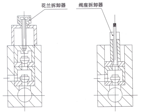 3.用阀座拆卸器将下花兰取出(图2-6).