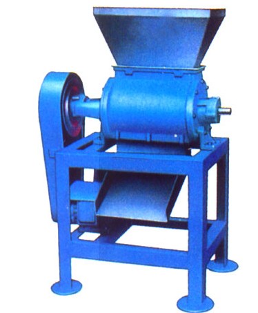螺旋主轴的旋转方向是顺时针方向从进料料斗到渣槽。当原料加入进料料斗并在螺杆推进下加压时,挤压的果汁通过滤网流入底部的果汁架,而废料则通过螺杆与压力调节的锥形部分之间形成的环形间隙排出,而间隙的大小可以通过压力调节头沿轴向的移动来调节。按顺时针方向使用(从设备的排渣槽到进料桶末端的手轮轴轴承座,压力调节头在左侧,间隙缩小,反之,间隙变大。)改变间隙的大小,即调节排渣阻力。渣率可以改变,但如果间隙太小,在强挤压下,渣中的一些颗粒会通过过滤器与果汁一起挤压出来。虽然果汁有所增加,但果汁的质量相对下降,应根据用户的具体工艺要求来确定间隙的大小。