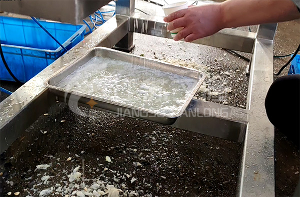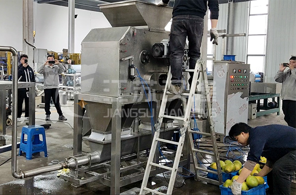 4、接通电源,启动传动电机,试机运行几分钟,确认一切运转正常后加入适量物料至机器内,先观察物料是否能够依次输送至各个机构达到果皮汁渣分离的效果。